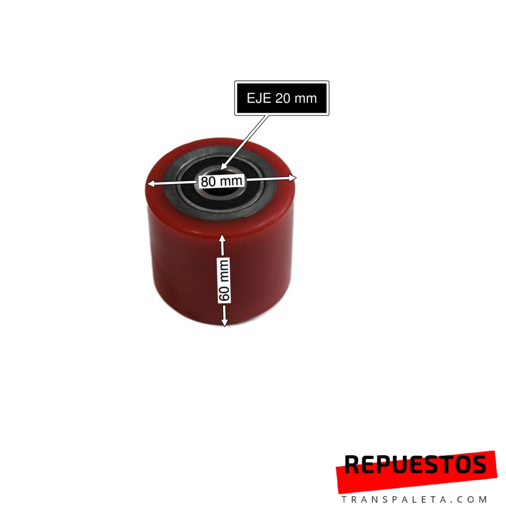 Etiquetas: RODILLO 80X60 EJE 20, Rodillo poliuretano, rodillo transpaleta, Rueda 80x60